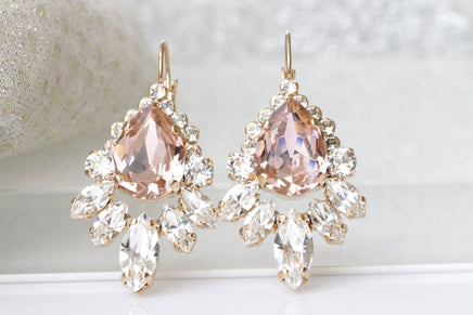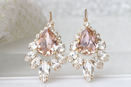 MORGANITE DROP EARRINGS, Blush Crystal Earrings, Bridal Pink Earring,Cluster Big Earrings, Bridal Rebeka Earrings,Vintage Wedding Droplet