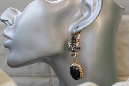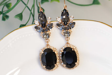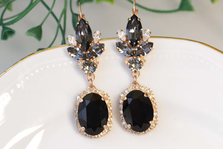 BLACK GOLD Earrings, Rebeka Jet Black Gray Earrings, Chandelier Earrings,Elegant Evening Earrings,Statement Mother OF The Groom Or Brides