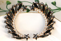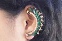 BlACK STAR CLIMBING Earrings, Moon Ear Cuff, Ear Crawler Earrings,Statement Woman Earring,Wrap Ear Cuff, Rebeka Black Hematite Long Cuff