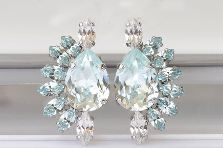 AQUAMARINE EARRINGS, Cluster Earrings, Light Blue Earrings, Big Studs, Wedding Earrings, Bridal Earrings, Light Azure Earrings,