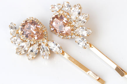 BLUSH BOBBY PINS, Bridal Bobby Pin, Wedding Pink Hair Pins, Vintage Bobby Pin, Rebeka Crystals Bobby Pin,Bridesmaids Stylish Accessories