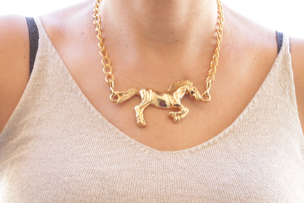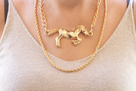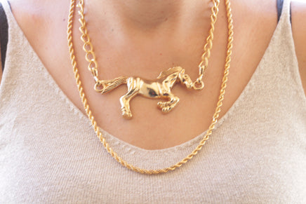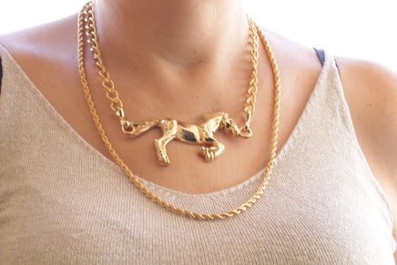 HORSE NECKLACE, Chunky Gold Horse Necklace, Large Necklace, Vintage Style Horse Necklace, Animal Big Pendant,Statement Gold Rope Chain