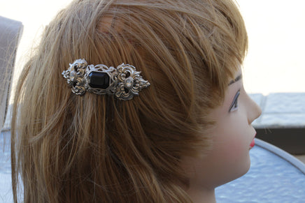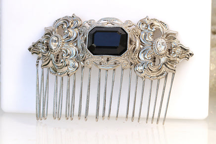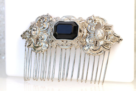 BLACK SILVER HAIR Comb, Filigree Hair Comb, Rhinestone Hair Jewelry, Wedding Hair Comb, Antique Style Hair Comb, Woman's Hair Accessories,