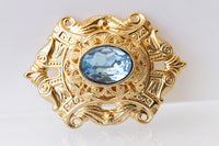 AQUAMARINE BROOCH, Filigree Dresses Brooch, Ethnic Brooch,Lace Brooch, Gold Blue Large Brooch, Antique Style Brooch,Grandmother Vintage Gift