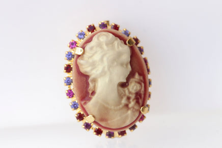 CAMEO BROOCH, Red Pink Fuchsia Cameo Brooch, Vintage Cameo Brooch, Lady Cameo Brooches, Gift For Her ,Coat Brooch, Red Purple Jacket Brooch
