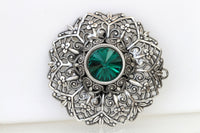 EMERALD BROOCH, Filigree Dresses Brooch, Ethnic Brooch,Lace Brooch, Green Rebeka  clothing Brooch, Circle Brooch,Grandmother Vintage Gift