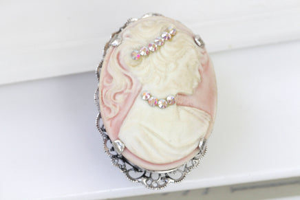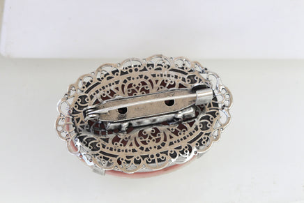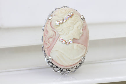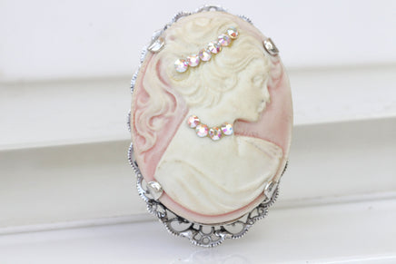 PINK CAMEO BROOCH, Scarff Cameo Brooch, Pink Rose Cameo Brooch, Lady Brooches, Oval Cameo Brooch ,Coat Brooch,Jacket Brooch, Pink Cameo Pin