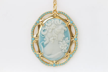 Cameo Necklace, Blue Cameo Pendant, Toggle Cameo Necklace, Lady Cameo Necklace, Victorian Style, Turquoise Cameo Necklace, Vintage Wedding