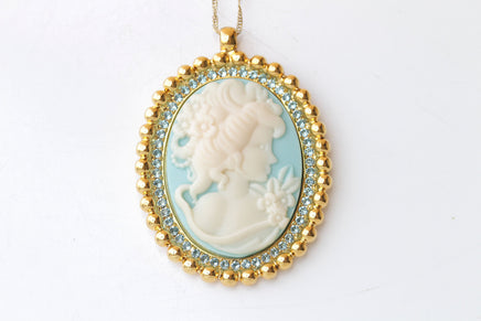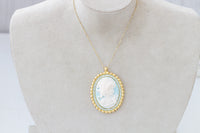 Cameo Necklace, Aquamarine Blue Cameo Pendant, large Vintage Pendant, Lady Cameo Necklace, Victorian Style, Turquoise Statement Necklace
