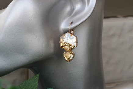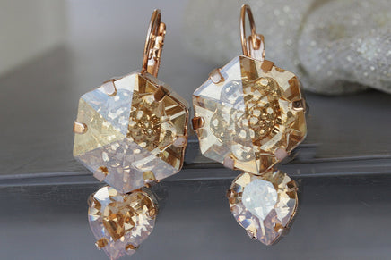 GOLD HEART EARRINGS, Bridesmaid Gift, Wedding, Champagne Rebeka , Love Jewelry, Christmas gift,Birthday Gift for Her, Anniversary Gift