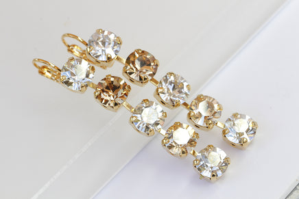 Rose Gold BRIDAL EARRINGS, Champagne Wedding Earrings, Rebeka Crystals Earrings, Gold Drop Long Earrings, Chandelier Statement Bridesmaid