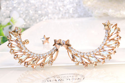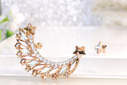 Robs Gold STAR CLIMBING Earrings, Moon Ear Cuff, Ear Crawler Earrings, Champagne Bridal Earring,Formal Wrap Ear Cuff, Rebeka Ear Climbers