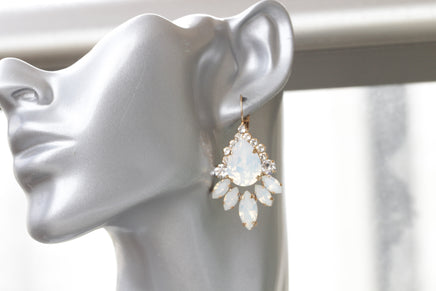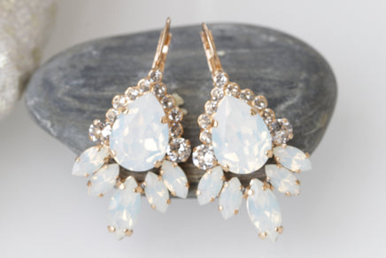 Rebeka opal earrings, bridal drop earrings, big droplet earrings, wedding dangle earrings, white opal earrings, statement drop earrings, cluster white earrings, leverback earrings, white wedding jewelry,