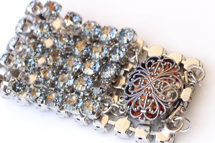 DUSTY BLUE BRACELET, Wedding Chunky Bracelet, Blue Gold Silver Formal Bracelet, Bridal Thick Statement Bracelet, Woman Evening Jewelry Gift