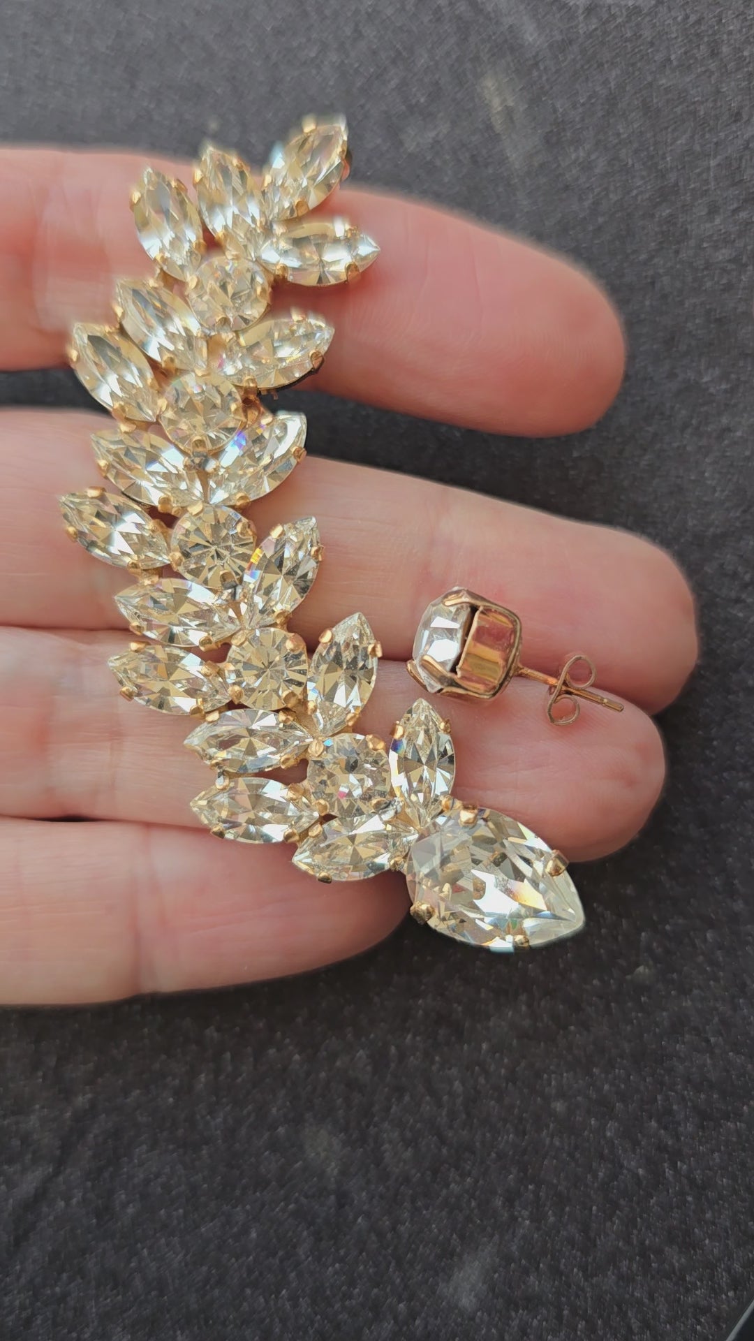 CRYSTAL EAR CLIMBER Earrings, Bridal Climbing Earrings, Silver Big Ear Crawler, Statement Chunky Ear climber,Rebeka Bride Wedding Jewelry
