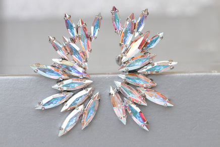 Ab Crystal EAR CLIMBER EARRINGS, Bridal Climbing Earrings, Ab Crystal Ear Crawler,Ear climber,Crystals Bride Up Earring,Wedding 2 earrings
