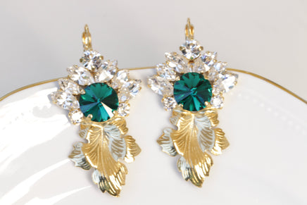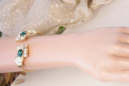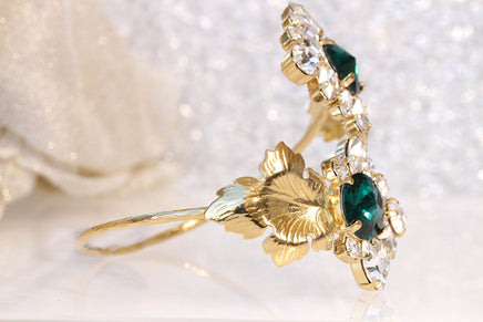 EMERALD GREEN BRACELET, Bridal Green Cuff Bracelet, Rhinestone Jewelry, Wedding Formal Bracelet, Leaf Bracelet, Leaves Crystals Bracelet