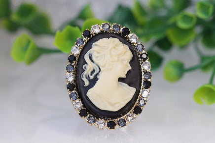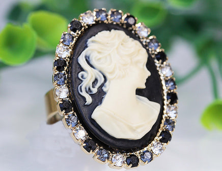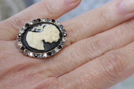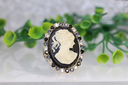BLACK CAMEO RING, Vintage Cocktail Ring, Black White Ring, Statement Rebeka Ring, Antique Style Ring, Lady Cameo Ring, Eco Friendly Gift