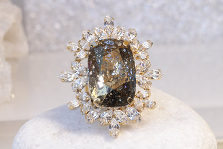 BRONZE COCKTAIL RING, Rebeka Ring, Brown Cluster Ring, antiqued bronze copper ring, Avant Garde Ring, Heavy Gold Ring, large square ring