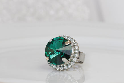 EMERALD CRYSTAL RING, Green Silver Emerald Ring, Rebeka Rings, Big Birthstones Ring, Cocktail Emerald Ring,, Round Stone Engagement Ring