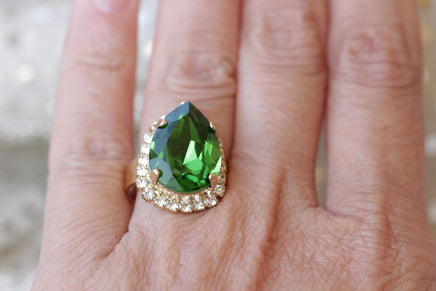GREEN COCKTAIL RING, Adjustable Ring, Green Rebeka Ring, Gold And Green, Bridesmaid Ring, Olive Green Ring, Green Crystal Ring, Emerald