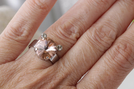 Made by hand, classy and casual blush moush ring by REBEKAjewelry. morganite mouse ring for exclusive occasions or work. Best quality metals and stones with crystals by Rebeka Worldwide.