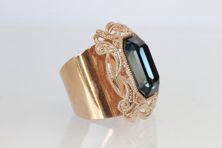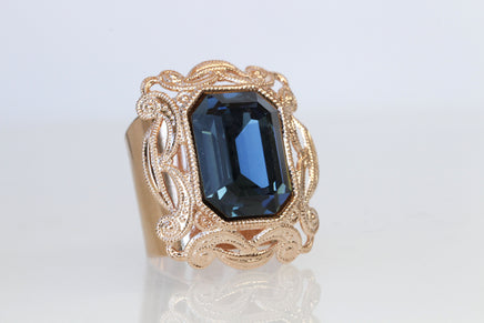 NAVY STATEMENT RING, Blue Navy Ring, Rebeka Ring, Antique Style Ring, Blue Stone Big Ring, Filigree Ring,Emerald Cut Ring, Chunky Ring
