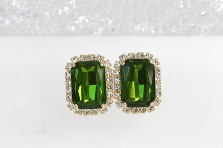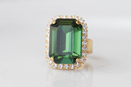 OLIVE GREEN RING, Cocktail Ring, Earrings Ring Set, Emerald Green Ring, Bridal Evening Ring, Green Gold Ring, Rectangular Large Ring Gift