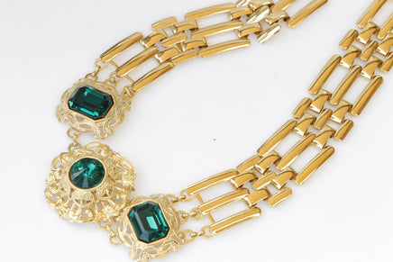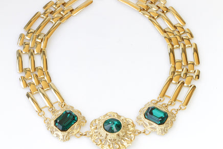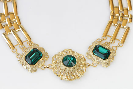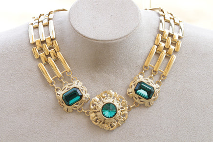 EMERALD GREEN NECKLACE,Green Jewelry, Emerald Gold Necklace Emerald Collar Necklace, Evening Necklace, Bib Chunky Statement Formal necklace