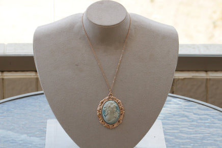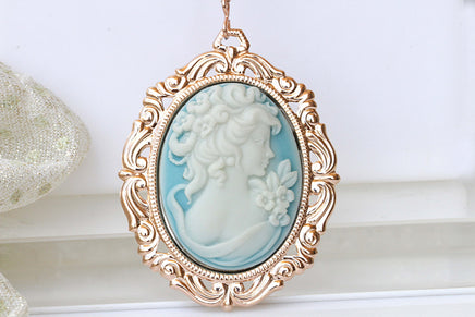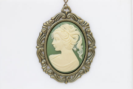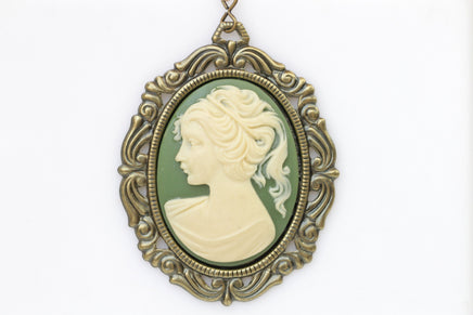GREEN Cameo Necklace, Christmas Gift, Cameo Pendant, Emerald Jewelry, Toggle Cameo Necklace, Victorian Style, Acrylic Cameo,Vintage Necklace