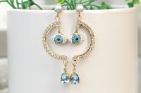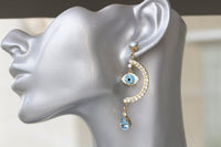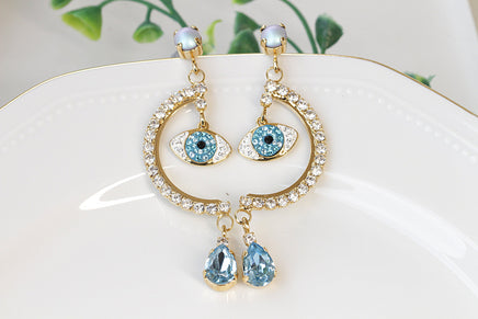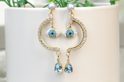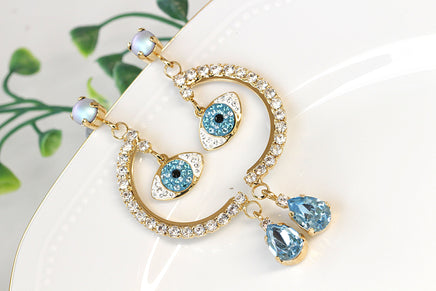 AQUAMARINE BLUE EARRINGS, Dangle Earrings, Blue Eyes Earrings, Earrings,Rebeka Charm, Half Hoop Earrings Gold, Luckily Evil Eye Earrings