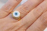 BLUE EVIL EYE Ring, Adjustable Ring, Gold Plated Shell Ring, Evil Eye Jewelry, Turquoise Evil Eye Bead Ring, greek jewelry, Ring For Woman