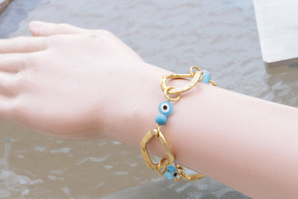 Evil Eye Bracelet, Turkish eye Bracelet, Evil eye jewelry, BLUE EYE BEADS Bracelet. beaded gold bracelet, Protection jewelry, Gift For Her