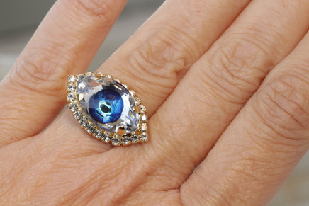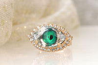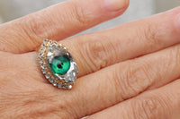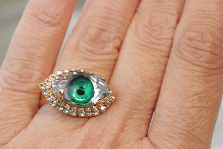 EYE RING, GREEN Eye Protection Ring,Rebeka Crystals Ring, Evil Eye Jewelry,Emerald Evil Eye Ring,Gothic Trending jewelry,Bohemian Jewelry