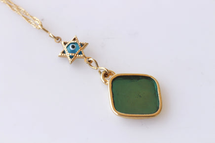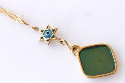 Star Of David Necklace, Shield Of David, Jewish Jewelry, Evil Eye Necklace, Religion Woman Necklace, Jewelry From Holy Land, Gold And Blue
