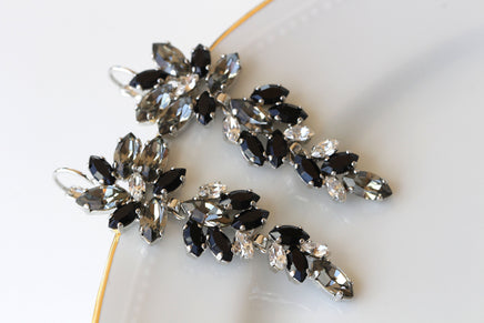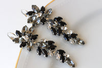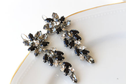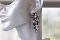 BLACK GRAY EARRINGS, Bridal Long Earrings, Statement Jewelry For Bride, Evening Black Dress Unique Earrings, Grape Cluster Earrings Gift