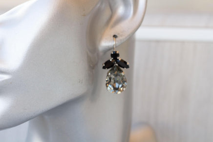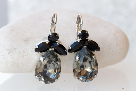 GRAY BLACK EARRINGS, Gray Evening Drop Wedding Earrings, Black Dresses Earrings, Dangle Formal Earrings For Her Gift, Teardrop Woman Gift