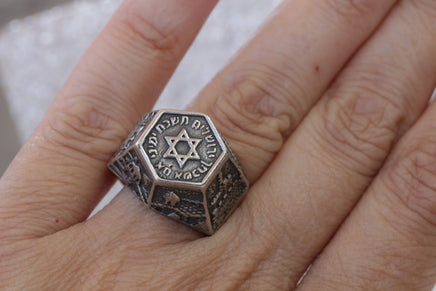 Star of David Ring, 925 Sterling Silver Large Ring, Star of David Ring, JERUSALEM ENGRAVED Ring, Judaica Jewelry, Men's Traditional Jewelry