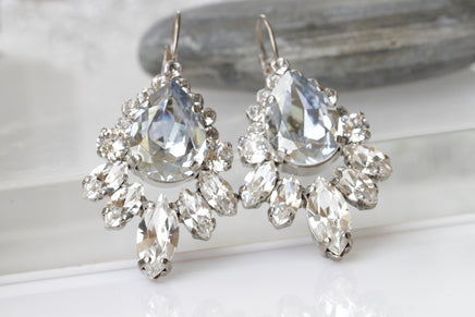 DUSTY BLUE Bridal EARRINGS, Drop Earrings, Bridal Blue Jewelry, Cluster Light Blue Earrings, Wedding Rebeka Earrings, Maid Of Honor Gift