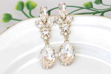 BRIDAL CRYSTAL EARRINGS, Bright Earring, Rebeka Earrings, Clear Chandelier Earrings,Bride Drop Long Earrings, Clear Clusters Wedding Gift