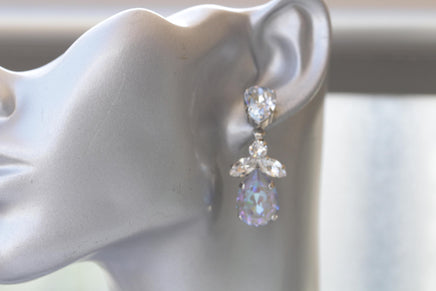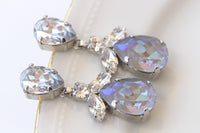 DUSTY BLUE EARRINGS,Long Wedding Earrings, Light Blue Crystal Earrings, Something Blue Jewelry For The Brides, Teardrop Bridal Earrings Gift