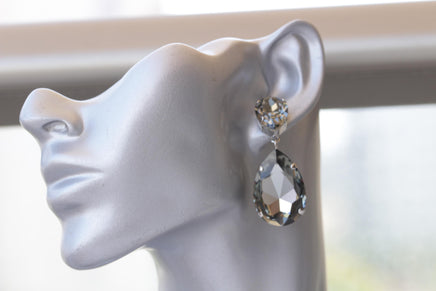 GRAY CHANDELIER EARRINGS, Statement Black Diamond Crystals Earrings ,Smoky Gray Big Earrings For Formal, Mother Of The Groom Large Earrings
