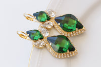 GREEN DROP EARRINGS, Evening Statement Wedding Earrings, Emerald Crystal Earrings,Jewelry For Brides, Cocktail Olive Green Earrings Gift