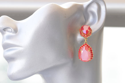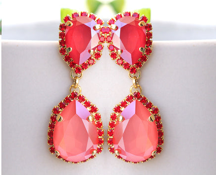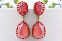 RED CORAL EARRINGS, Cocktail earrings. Teardrop earrings. Chandelier earrings. Red Gold Long Earrings, Red Drop Earrings. Gift For Woman