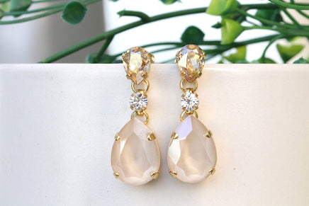 Bridal IVORY earrings, Bridesmaid Earrings, Champagne Drop Earrings, Nude Ivory Cream Teardrop Earrings, Rebeka Wedding Jewelry For Bride