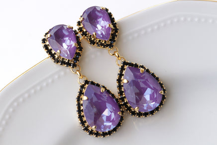 PURPLE BLACK EARRINGS, Purple Teardrop Earrings, Bridal Chandelier Earring, Evening Earring, Bridal Earrings, Light Amethyst Long Earrings