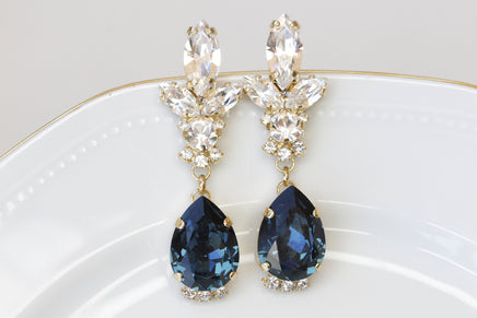 BLUE Navy NECKLACE, Bridal Earrings Long Pendant ,Navy Blue Necklace,Bridal Earrings, Teardrop Necklace, Bridal Showers,Classic Jewelry Gift