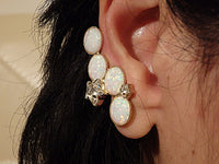 Ear Climber earrings. Ear crawler earrings. Pink Opal earrings. October jewelry. Wedding Rebeka earrings. Star earrings, Double earring
