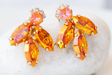 Lovely orange cluster stud earrings using with crystal stones are marquise shaped .