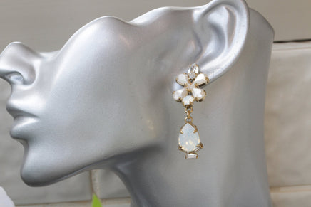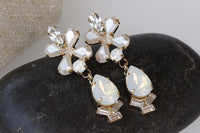 BRIDAL PEARL EARRINGS, White Opal Pearl Earrings, Rebeka Earrings, Ivory Chandelier Earrings,Jewelry For Bride,Crystal And Pearl Earrings